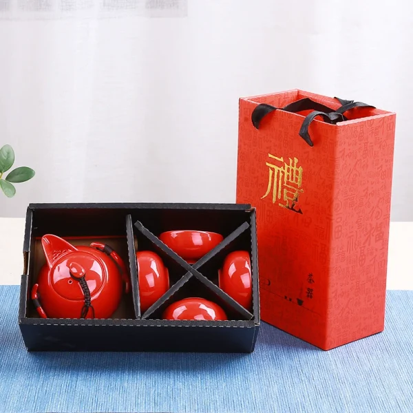 HomePOPULAR ITEMSTea AccessoriesRed Ceramic Tea Set with Teapot